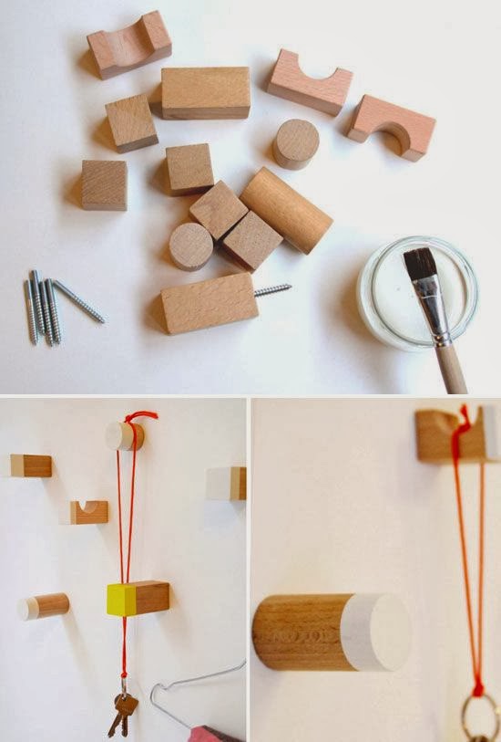 Ενώ πρωτότυπες κρεμάστρες για κλειδιά ή αξεσουάρ μπορείτε να δημιουργήσετε αν τοποθετήσετε μικρά γατζάκια κάτω από κάθε κύβο και τους βιδώσετε σε ένα κομμάτι ξύλου...