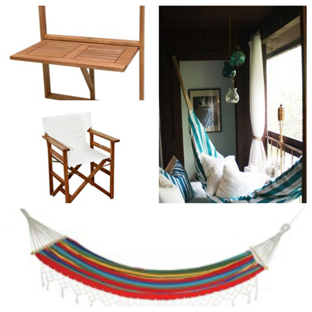Μια αιώρα συνδυασμένη με καρέκλες σκηνοθέτη και τραπεζάκι που στερεώνεται στα κάγκελα του μπαλκονιού είναι μια πολύ γρήγορη και οικονομική ιδέα για να διαμορφώσετε ένα μπαλκόνι που εχει περιορισμένο πλάτος…